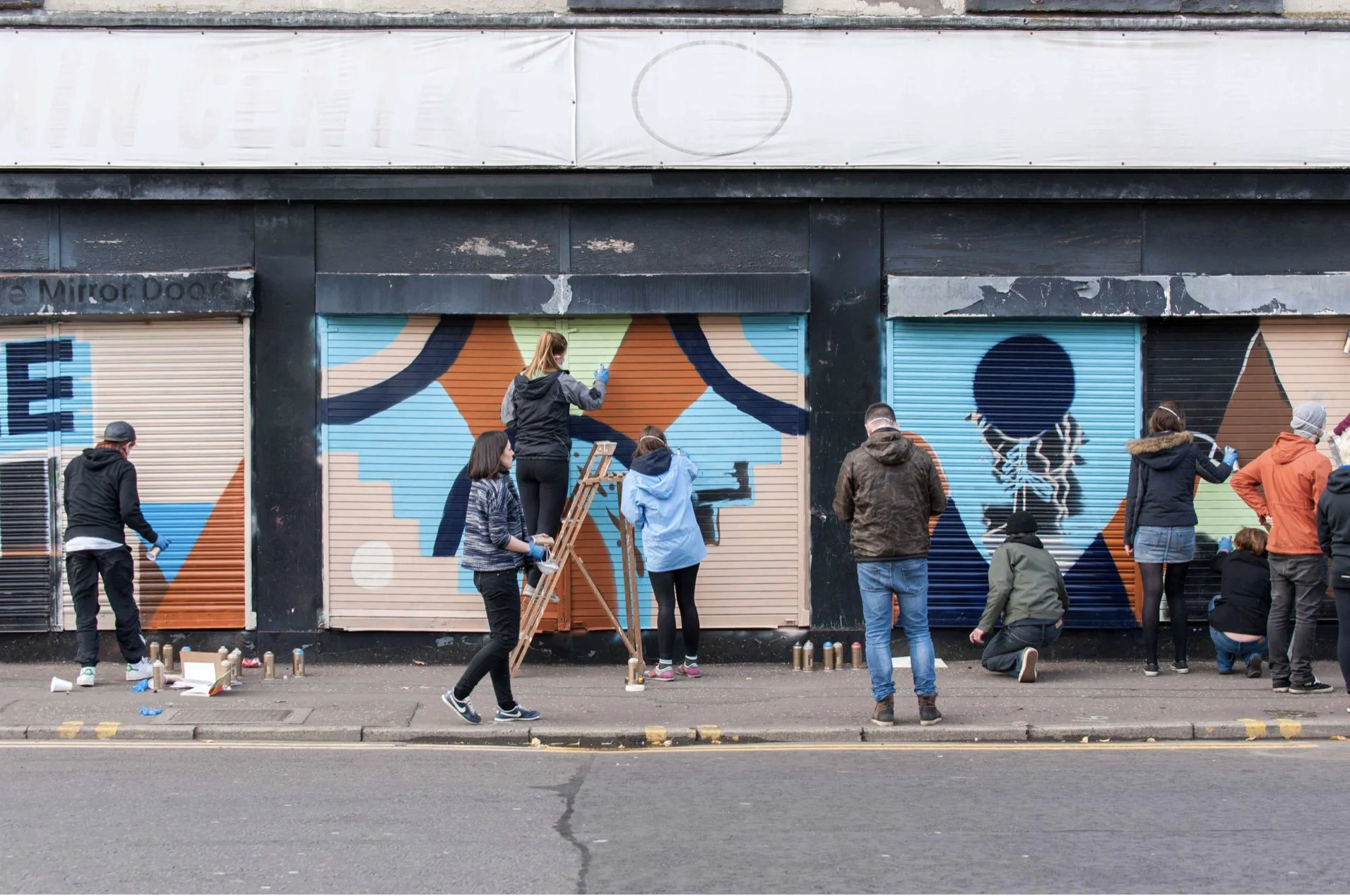 Process shot of shutter painting workshop for Graphic Design Festival Scotland.